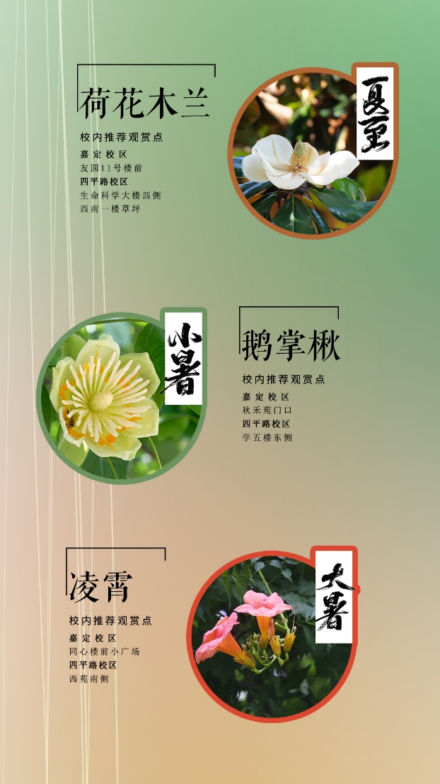 陈春杳杳,来岁昭昭。于同济校园的四季更迭中,我们携手送别甲辰,喜迎乙巳。2024,我们循着节气的脚步,触摸季节的脉络;我们欣赏色彩的交织,感悟自然的韵律;我们以“二十四节气植物图谱”为钥匙,打开同济的每一帧风景。让我们共同回顾图书馆与“同济二十四节气植物图谱”相伴的历程,感受那份自然与诗意交织的美好时光。