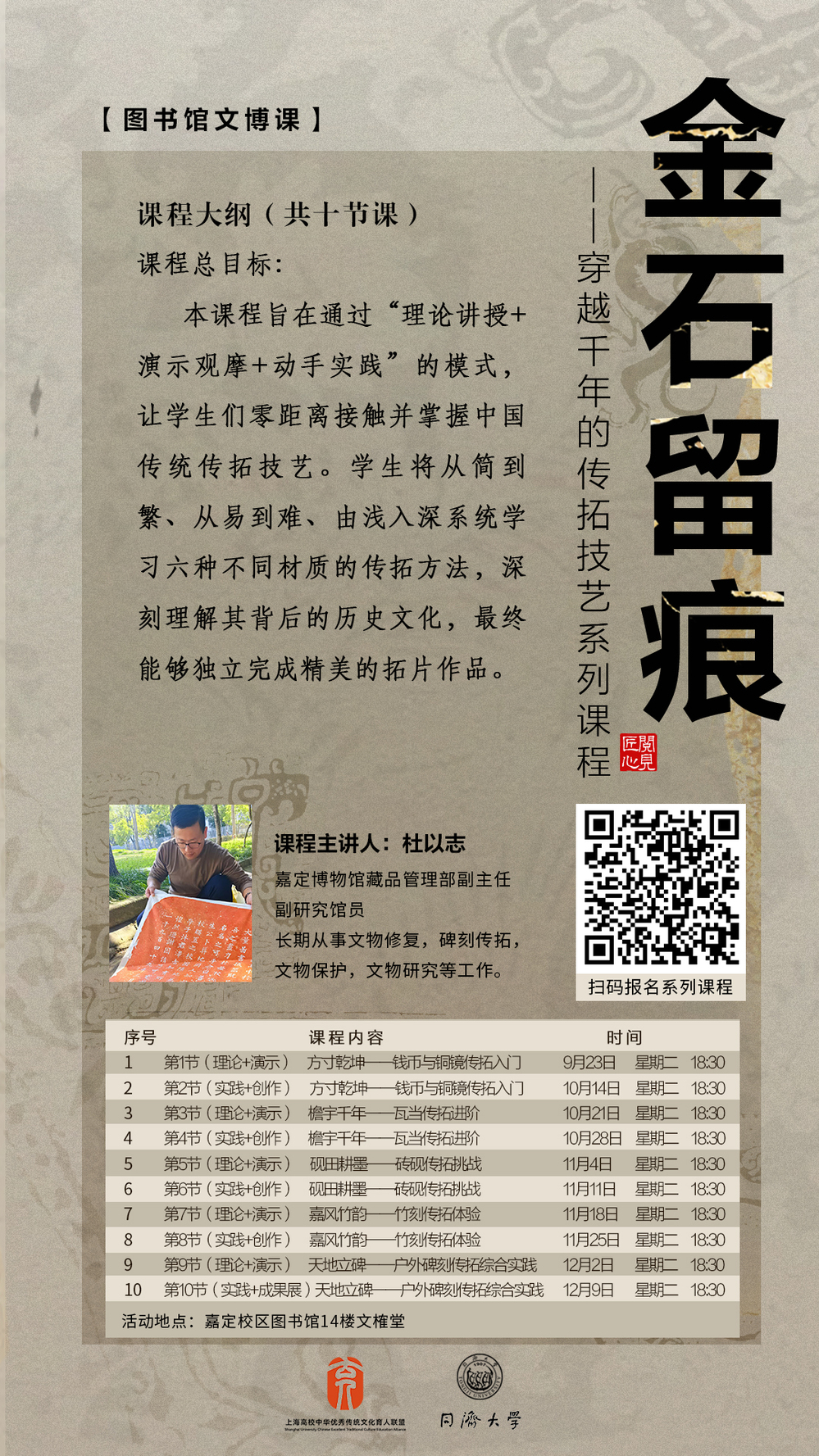报名对象:同济大学在校学生,无论你是传统文化爱好者,还是手工创作者,只要对传拓感兴趣,零基础也可报名~