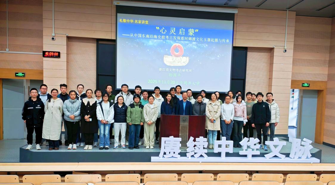 1120日,浙江省文物考古研究所史前考古室主任、河姆渡文化代表性遗址田螺山考古队队长孙国平做客同济大学“礼敬中华·名家讲坛”,以“心灵启蒙——从中国东南沿海史前考古发现看河姆渡文化玉器起源与传承”为题,从考古学与中国当代社会、中国沿海(长三角以及浙江)地区的自然地理环境、浙江新石器时代考古与史前社会进程、河姆渡文化玉器概述、中国东南沿海史前社会进程中的原始艺术几个方面系统探讨了文化与文明的关系,带领师生走进以河姆渡文化为代表的早期人类文明图景。
