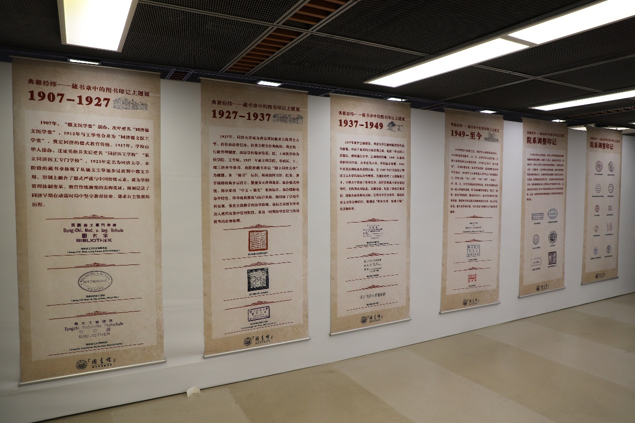 藏书章既是朱痕,也是墨韵。藏书章虽小,却印刻着一所大学的岁月年轮与文化基因,更蕴含着同济与祖国同行、以科教济世的时光密语。同济大学图书馆自创校之初,便以典籍为基,承学术薪火,其藏书章不仅为图书归属之标识,更是学校发展历程的微观见证。本次展览以藏书章为线索,按时空脉络系统呈现同济自建校至今的藏书印记。