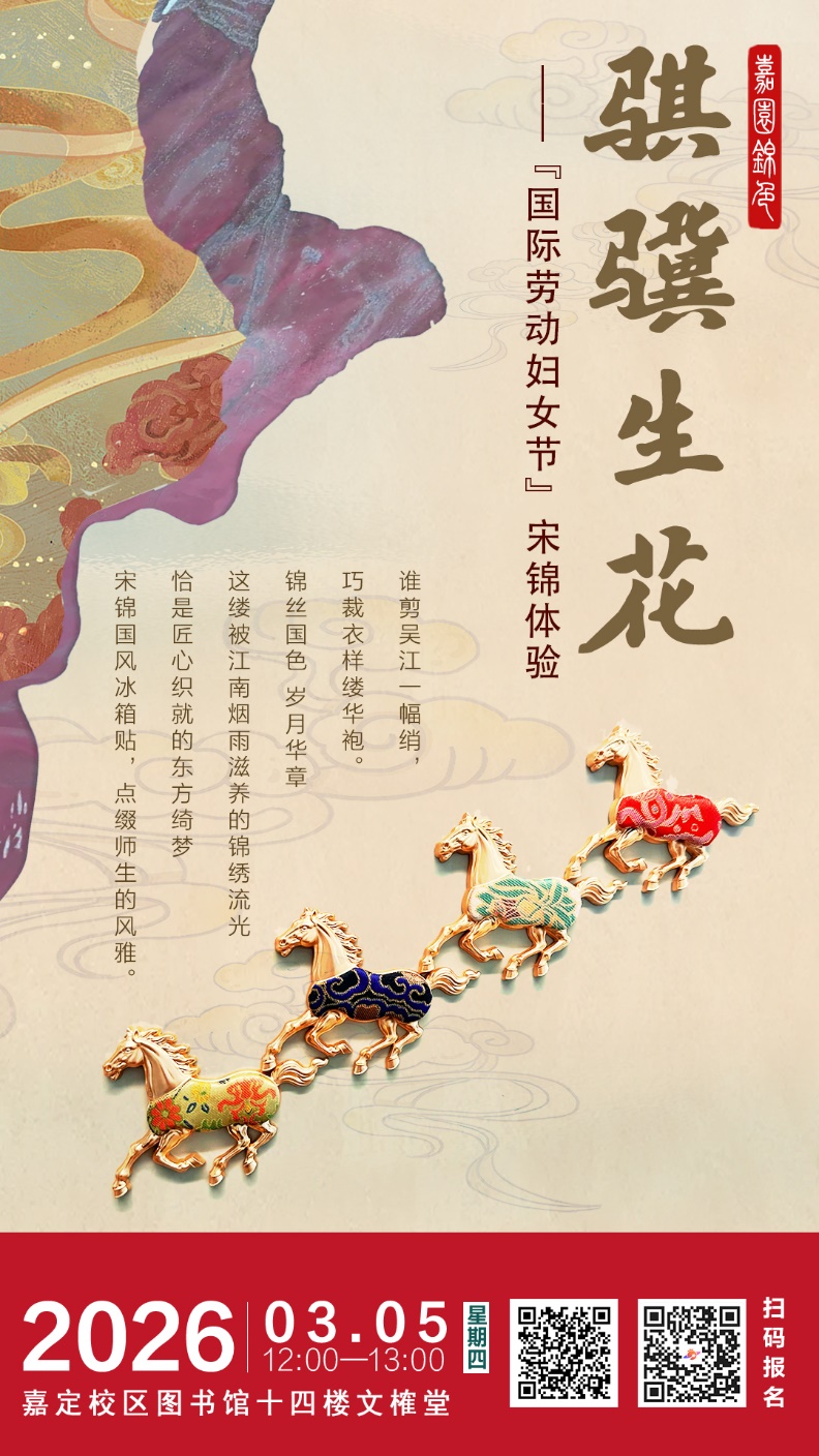 宋锦作为中国四大名锦之一,是国家级非物质文化遗产,始于宋代,以经纬显花、压制细腻著称,素有“一寸宋锦一寸金”之说。宋锦质地柔软坚固、图案精美,如今在传承古法工艺的基础上融入现代审美,在点滴中续写东方美学的温柔篇章。本次活动将用宋锦这一珍贵面料制作宋锦国风冰箱贴,以点缀师生的日常风雅。