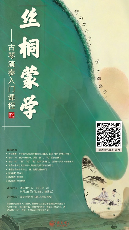 报名对象:同济大学在校学生,无论你是古典音乐爱好者、传统文化追随者,还是想寻找一处心灵栖息地的零基础小白,只要对古琴抱有好奇与热爱,均可报名参与~